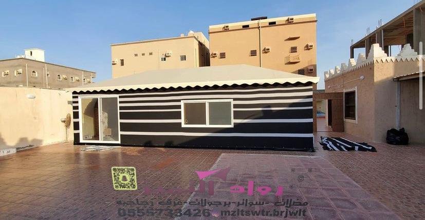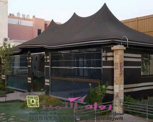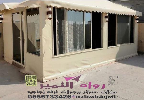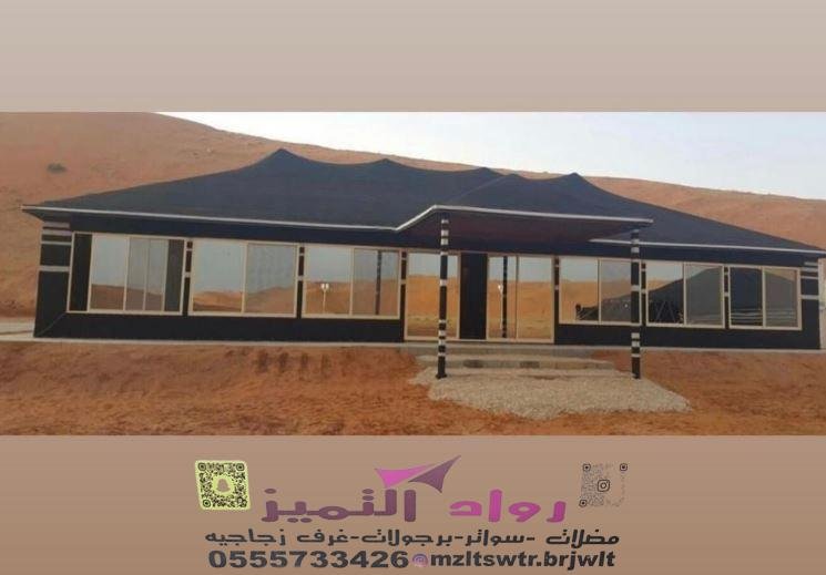 تحتوي على هياكل خشبية أو معدنية مع تغطية قماشية، ما يضفي توازنًا بين الجمال والاستدامة.